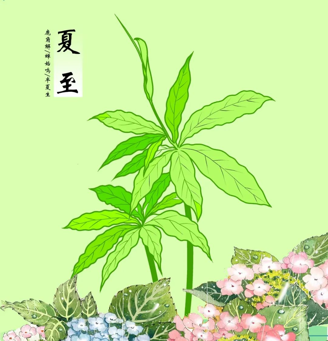 半夏药草因仲夏时在阴湿环境生长而得名,反映了夏季炎热中喜阴生物的生长与阳性生物的衰退。