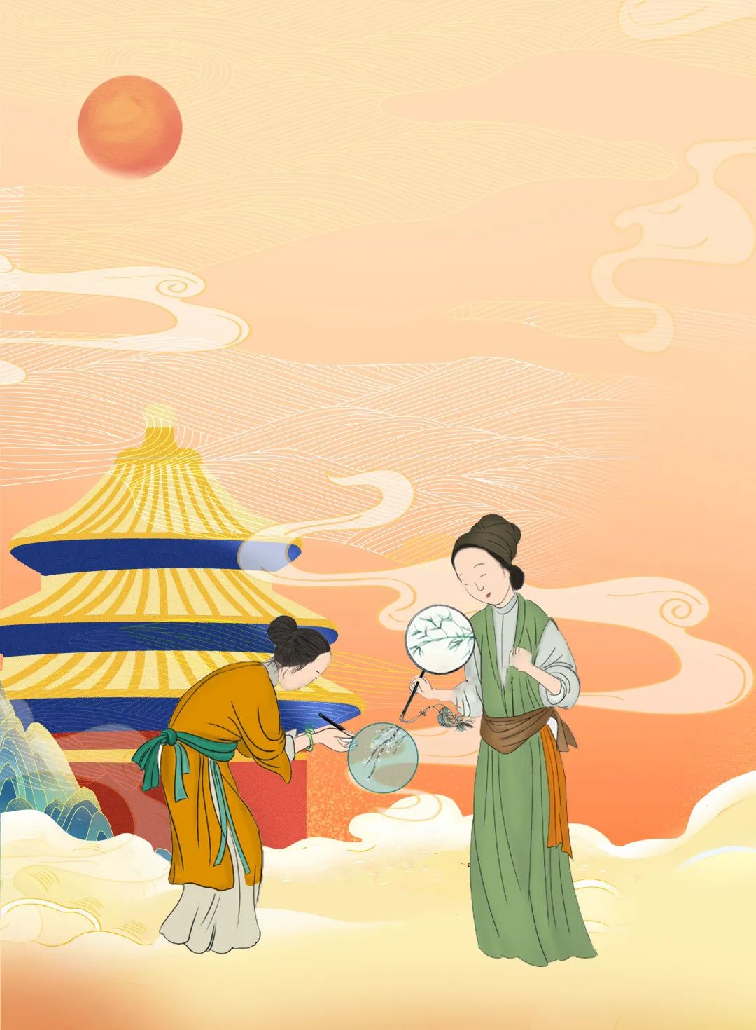 夏至时节,女子之间互赠扇子、脂粉等物。扇子带来清凉微风,脂粉则用于掩盖夏日汗水产生的气味,具有实用价值。