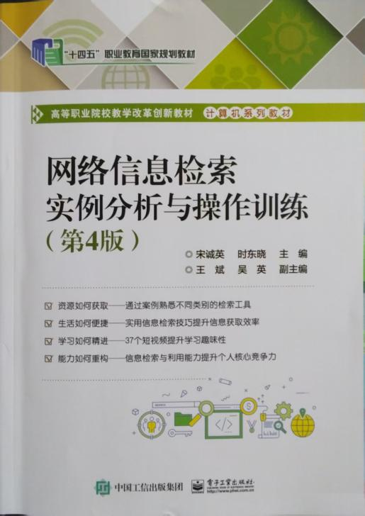 《网络信息检索实例分析与操作训练》(第4版)-宋诚英主编,该书作为本学期大三《信息技术II》课程教材。