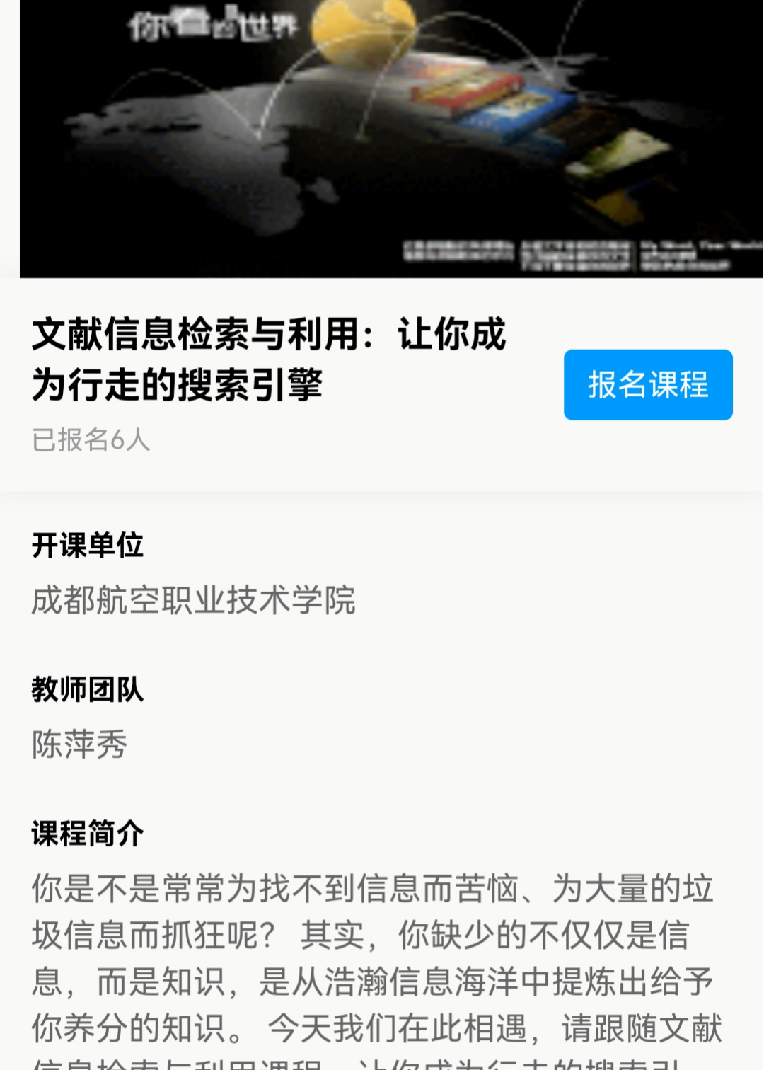 网络课程名称:《文献信息检索与利用:让你成为行走的搜索引擎》