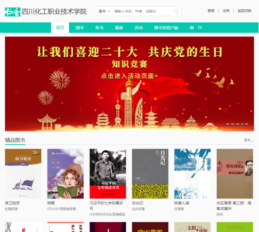 “书香平台”旨在为全校提供便捷的数字阅读网站服务,提升师生阅读兴趣,促进全社会阅读氛围的形成,助力国家全民阅读战略的实施与推广,为建设书香校园贡献力量。“书香”平台基于互联网技术,通过云端服务为师生提供优质的数字阅读服务。书香平台拥有海量优质正版数字阅读资源,包括电子图书10万余种,有声听书3万余集,期刊不少于400种。